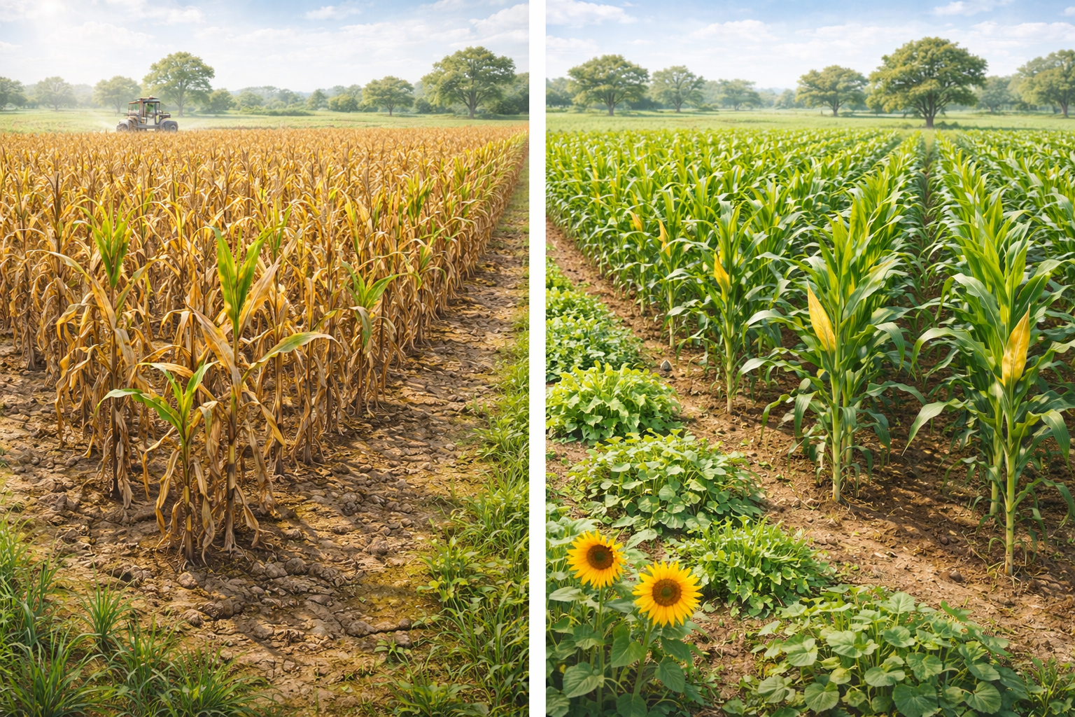 Illustration 1 — L'effet visible de la monoculture vs la rotation sur la vigueur des plantes