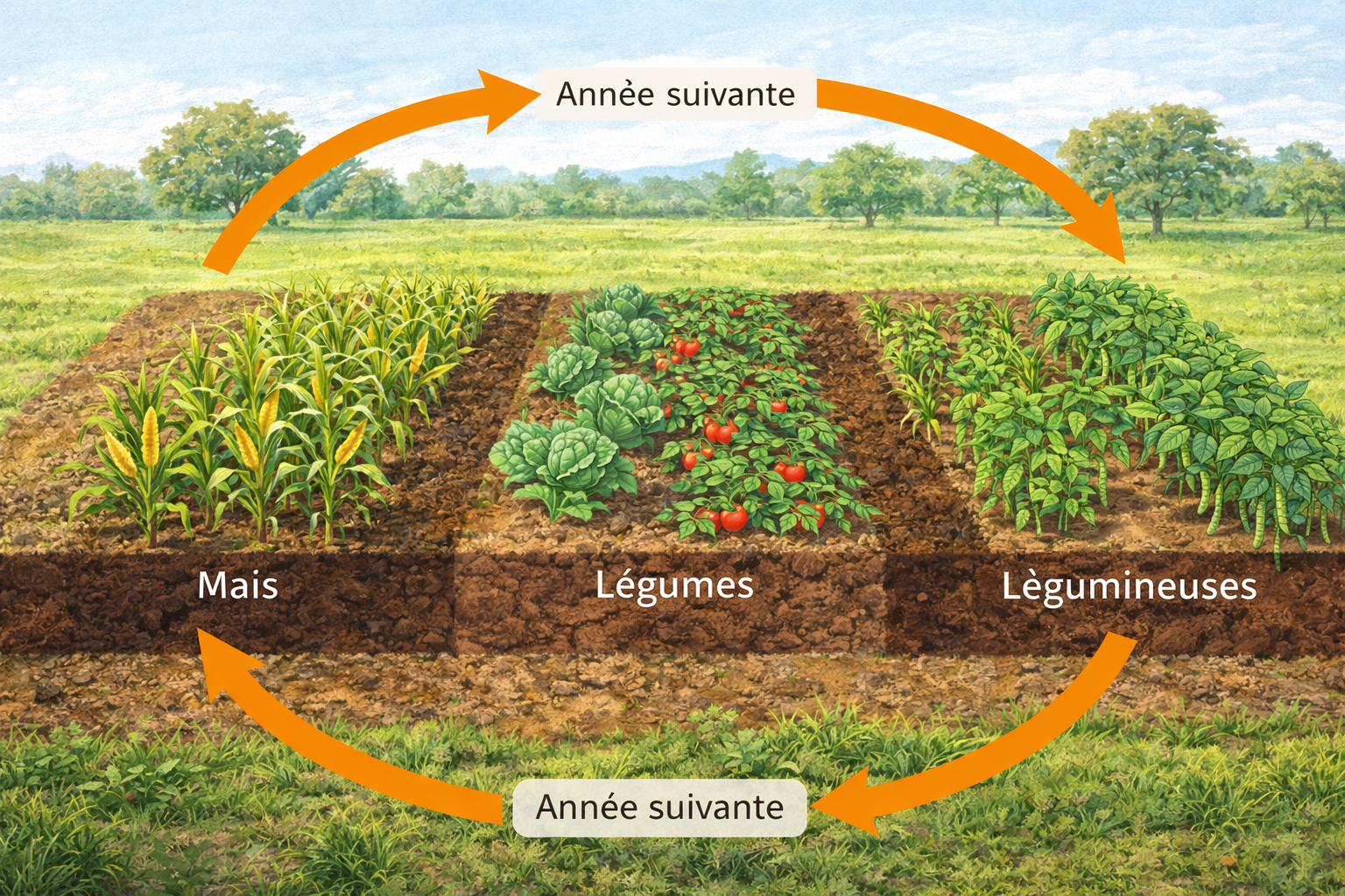 La rotation ameliore un sol. Mais si votre sol est extremement appauvri, la rotation seule peut ne pas suffire pour la premiere annee. Dans ce cas, commencez par apporter un peu de compost ou de fumier pour redonner de la vie a votre terre. Ensuite, la rotation prendra le relais et entretiendra cette fertilite.