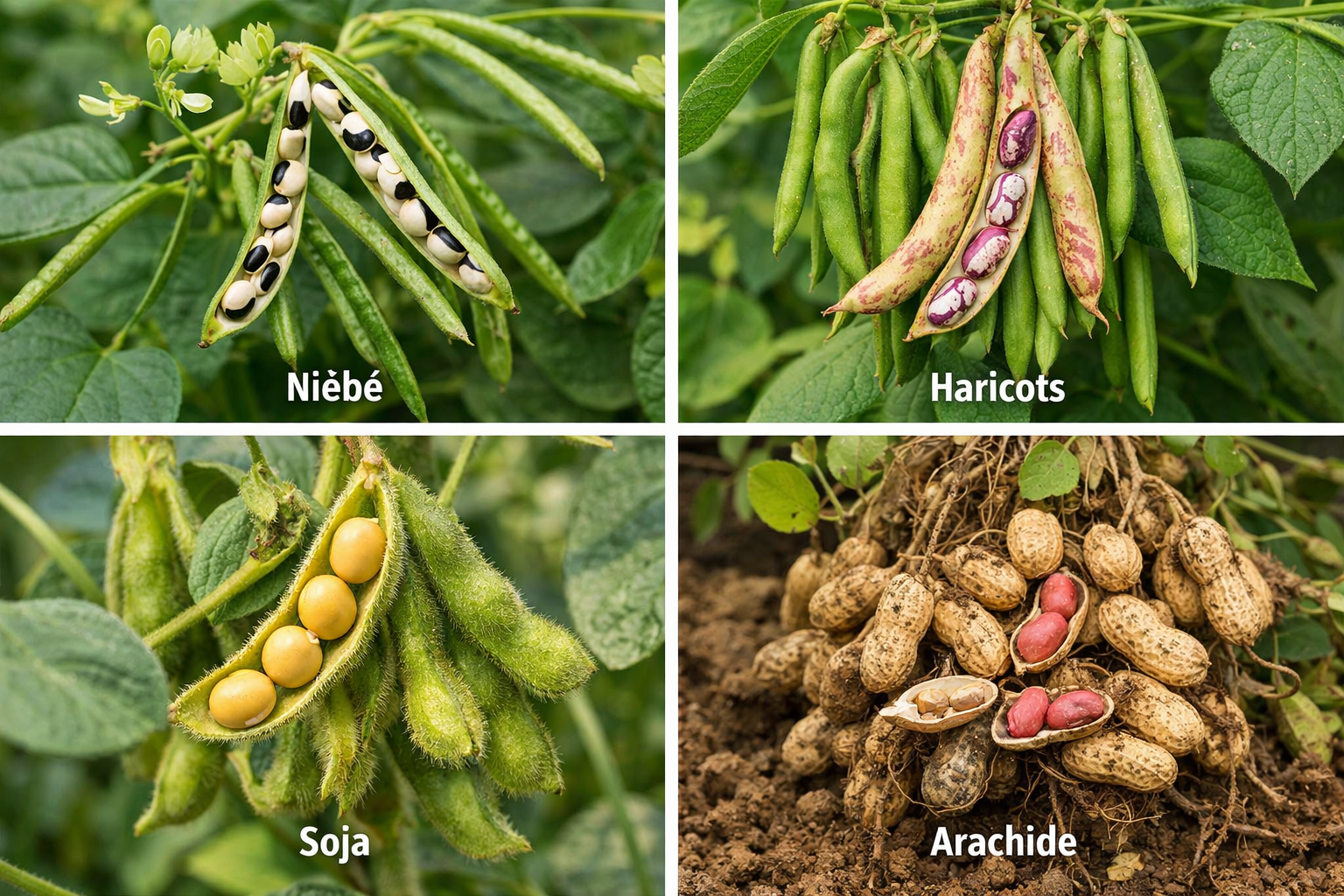 Astuce : choisissez selon votre region Il n'y a pas une seule bonne reponse. Choisissez la legumineuse la plus adaptee a votre sol et a votre climat local. Dans les zones seches : le niebe ou l'arachide. Dans les zones humides : le haricot ou le soja. Dans les zones de montagne : le pois chiche ou la lentille. Si vous ne savez pas laquelle choisir, demandez a un agriculteur experimente de votre village ou a votre conseiller agricole local. |