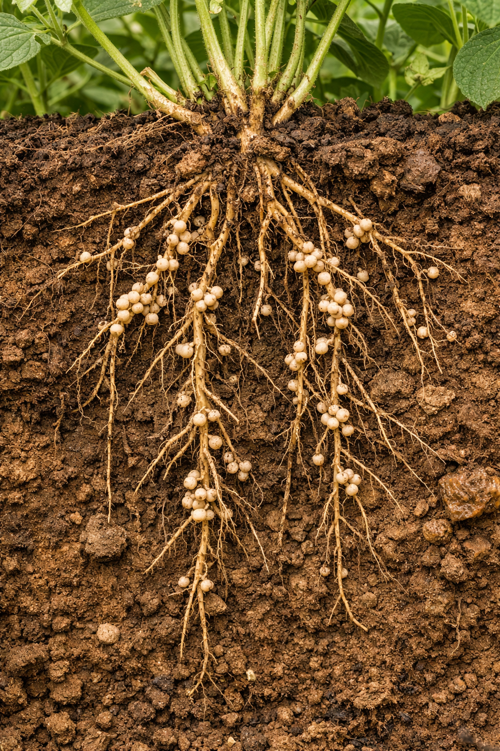 Illustration 4 — Les racines d'une legumineuse avec ses nodules, visibles comme de petites boules blanches